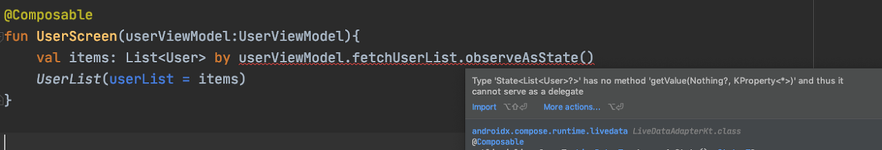 Type 'State<List?>' has no method 'getValue(Nothing?, KProperty<*>)' and thus it cannot serve as a delegate