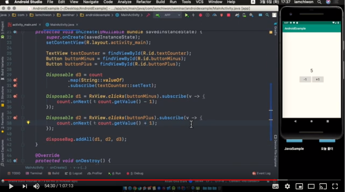 2장(Observable) => 3장(map-filter-reduce) => 4장(주요 연산자) => 5장(RxJava 때문에 달라지는 비동기 프로그래밍, 스케줄러) => 6장(RxAndroid) => 7장(디버깅, 예외처리)
