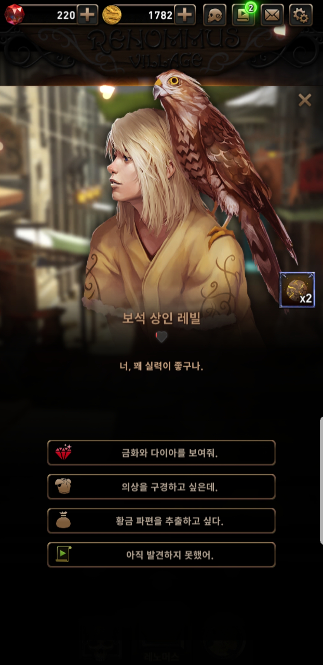 주인공이 '레노머스' 마을에 진입하고 나면, 해당 마을의 상인들이 NPC로 나타납니다. 처음엔 카드 상인 루네와 보석 상인 레빌만 있다가, 하피로, 기브아, 카자브 등등 클랜 시스템과 더불어 더 생깁니다. 각 NPC들은 거래, 제작 등의 역할과 더불어 퀘스트를 주인공에게 의뢰하고, 이 의뢰를 수행하고 나면 친밀도가 높아집니다. (하트 표시로 확인 가능)