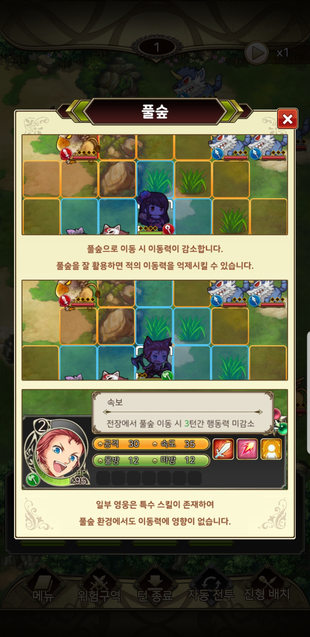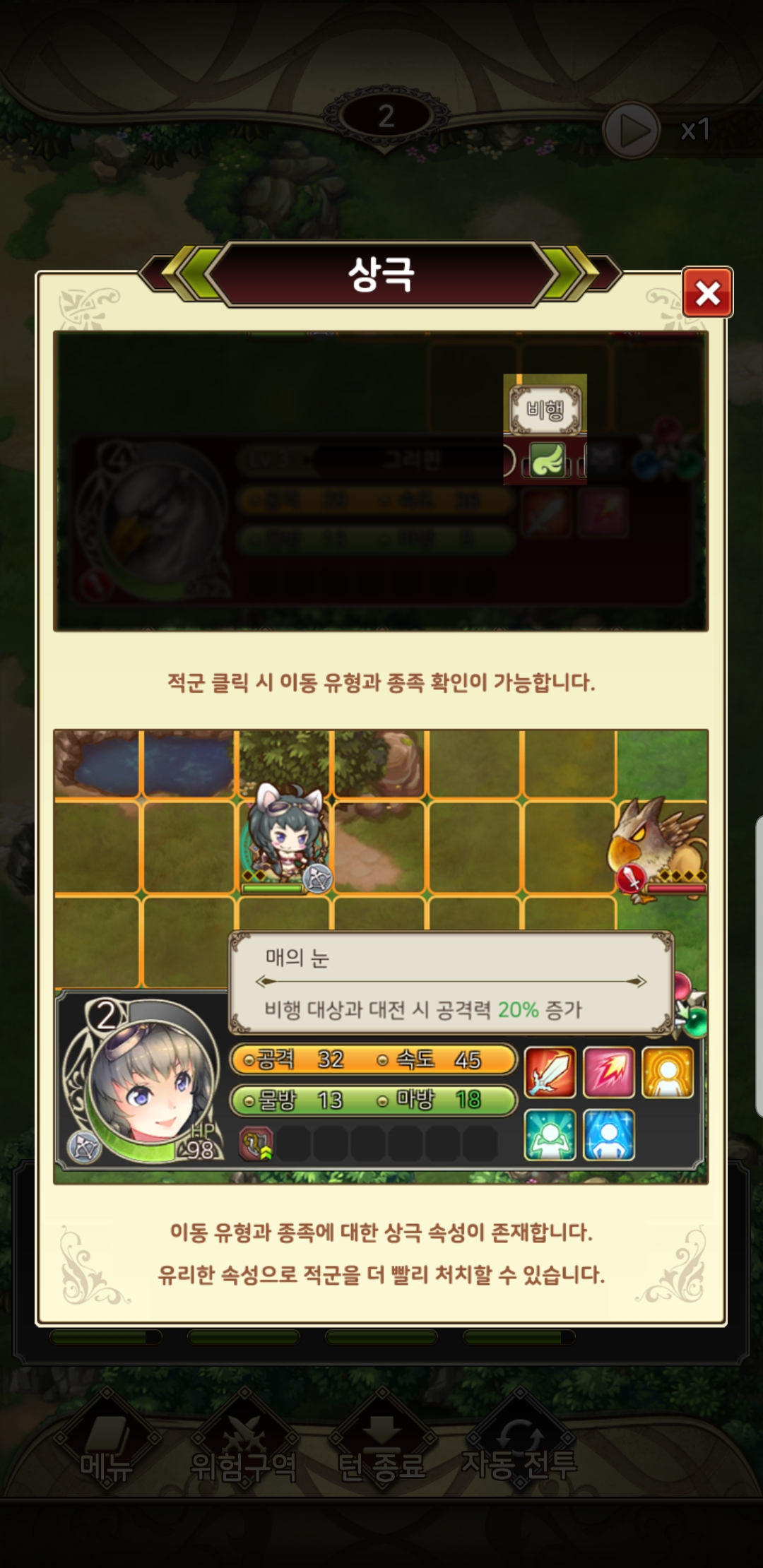 - 이동력을 억제 시키는 풀숲 조건도 있으며, 지원군 등 영웅 이외의 조건들로 전략을 세울 수 있습니다.