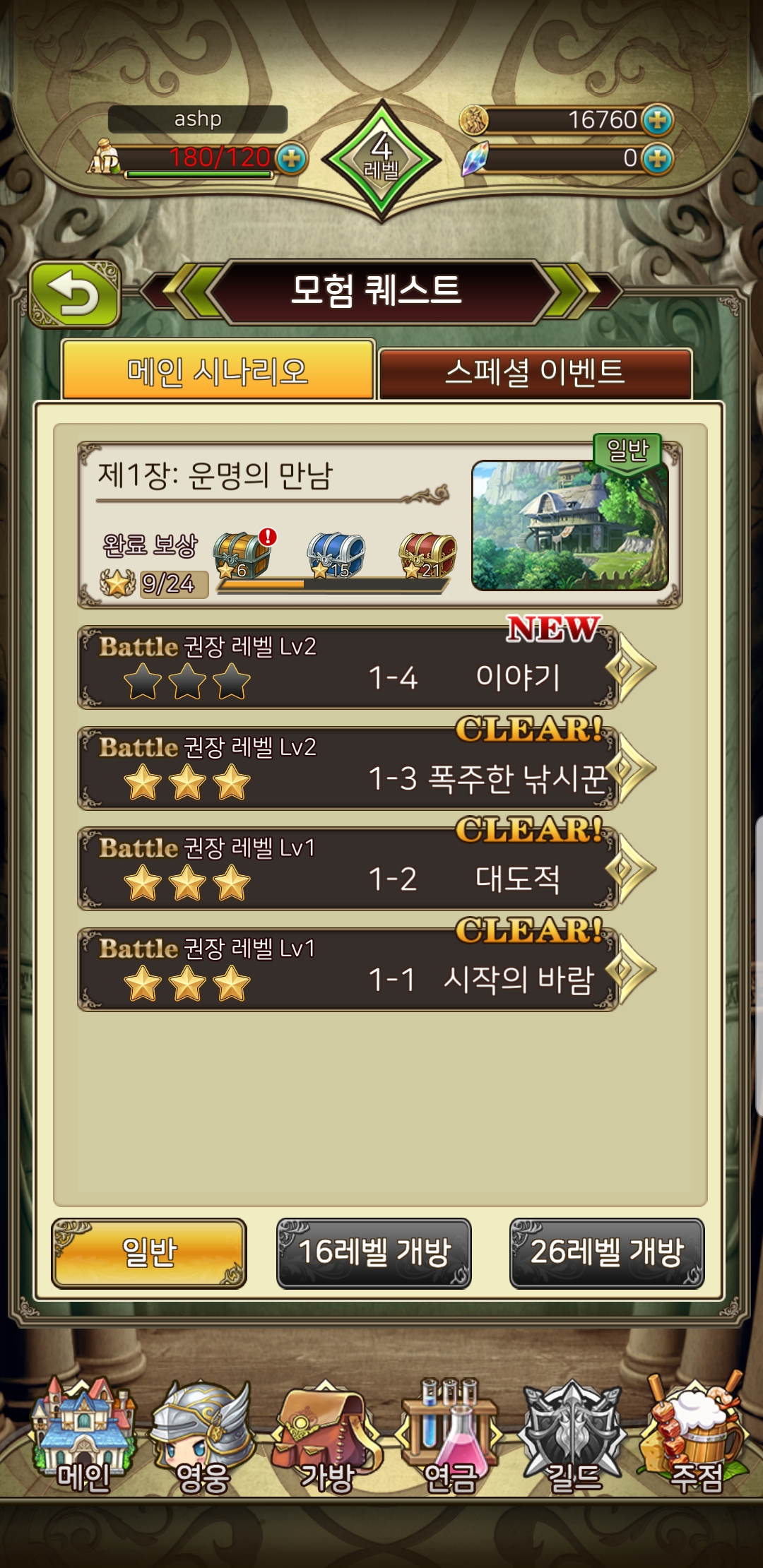 이전에 했던 보스레이브와 같은 게임과 달리, 자동전투모드가 없습니다. 또한 행동력이나 스테미너가 별도로 없습니다. 즉, 유저가 수동전투를 하고 싶은 만큼 계속할 수 있다는 점. 플레이하고 잠시동안이나마 이점에 대해 매력을 느끼긴 했습니다. 마치 옛날에 하던 온라인 RPG 게임을 핸드폰으로 하는 기분이었거든요.