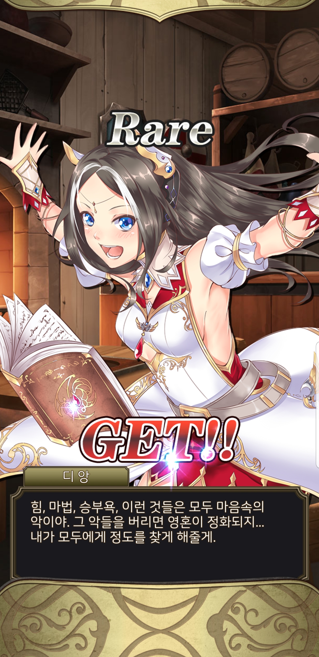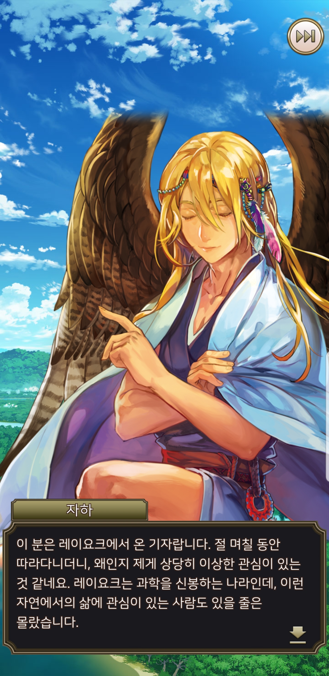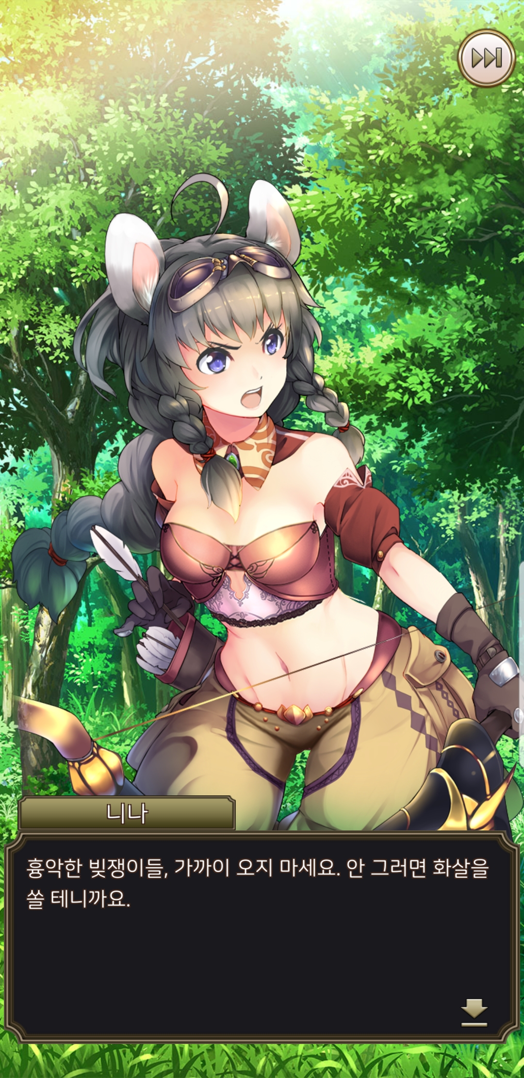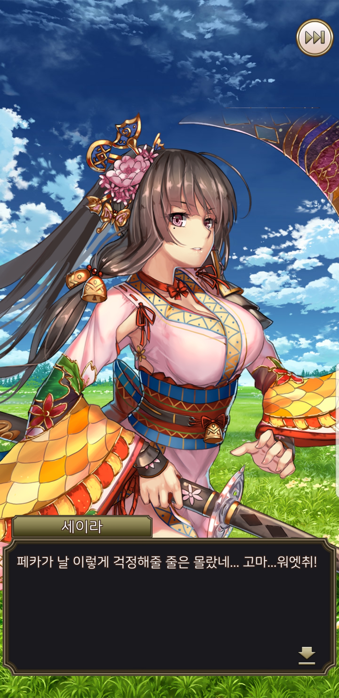 일러스트가 참 제 취향으로 맘에 들지만, 딱히 움직이는 것도 아니고, 다른 장면이라던가 포즈가 바뀐다던가 하지도 않습니다. 밋밋하게 멘트만 바뀝니다. 친밀도가 높아져도 웃는 표정 하나 짓는게 아니라 하트뿅뿅 이펙트만.... 그러다보니 전투 외적인 재미는 딱히 없네요. 반복적으로 노가다해서 강화하고 레벨업하고...