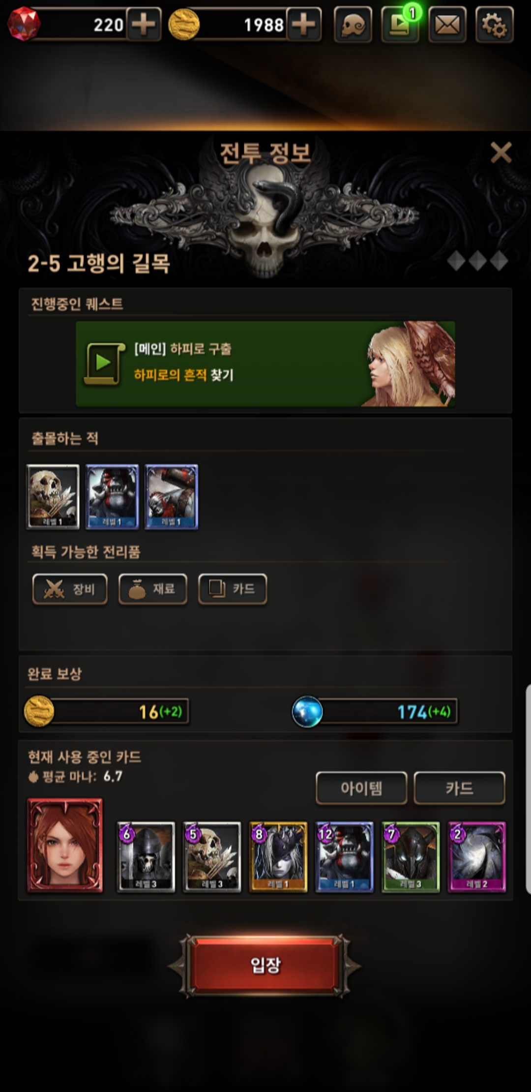 덱 편성에서 코스트 제한이 없기 때문에, 필요한 카드는 자유롭게 사용 가능합니다. 물론, 해당 카드마다 소비 마나가 있기 때문에 나름 생각은 해야하지만... 그것도 한두번 익숙해지면, 각 스테이지마다 진입 전에 출몰 몬스터가 무엇인지 미리 알 수 있기 때문에 대응하기 쉽습니다. 수동전투라서 집중해야하는 것 치고는.... 무덤덤하게 반복적으로 주인공 안죽게 뒤에 배치하고 궁수 먼저 죽이고 효율 좋은 애들 꾹꾹 누르고 끝...? 하다보면 수동전투의 매력보다는 자동도 아닌데 귀찮아서 영혼없어지는 노가다로 변질됩니다.