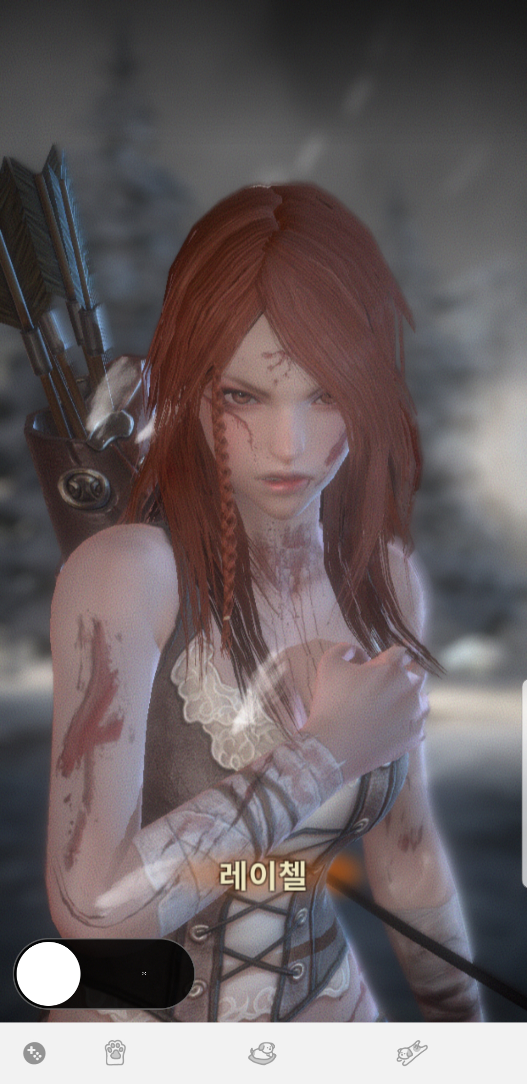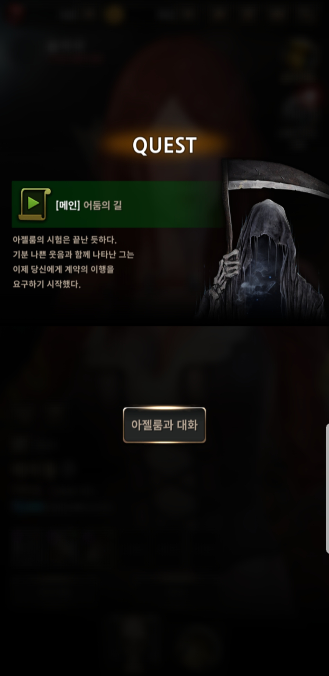 어찌 되었든 게임의 맨 처음 장면은 레이첼이 검은 뱀을 찾기 위해 죽음을 두려워하지 않고 전투에 임하는 상황입니다. 목숨이 위태로운 상황에서 레이첼의 모습을 본 '아젤룸'이라는 존재가 레이첼의 영혼을 대가로 검은뱀의 수하가 되게끔 계약을 합니다.
