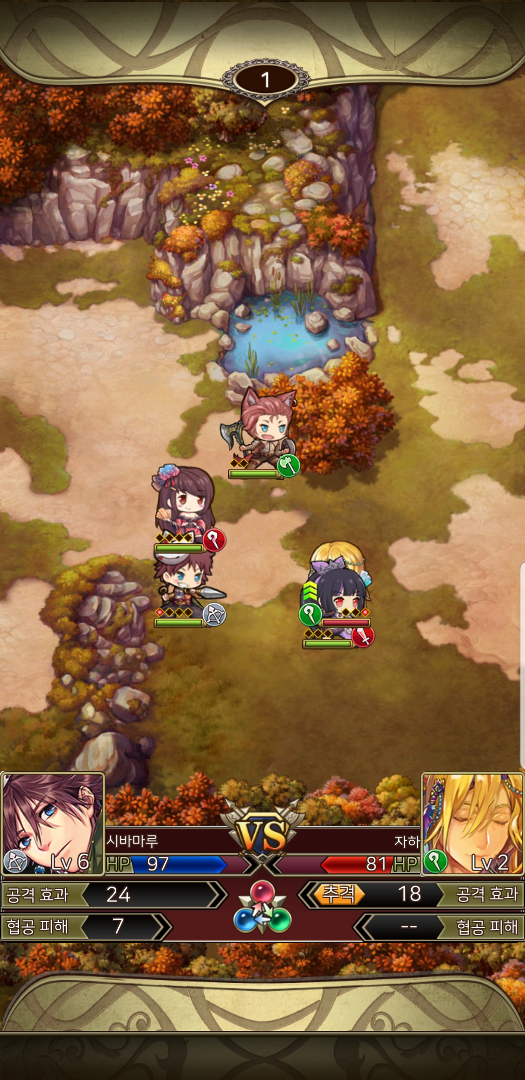 2) 맵 지형 및 진영을 고려해 전략적인 전투를 즐기는 턴제 SRPG