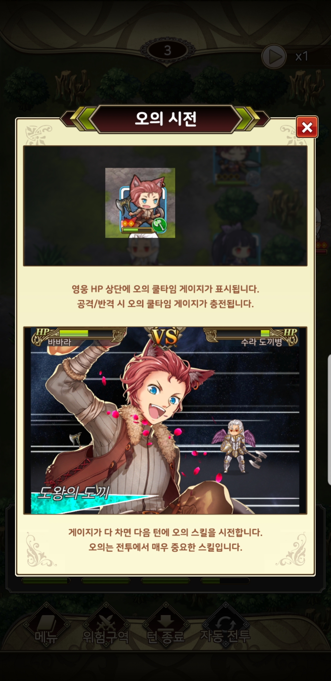 - 각 스토리마다 최대 5명의 영웅을 배치하여 턴마다 전략적으로 영웅을 사용해 싸워야합니다.
