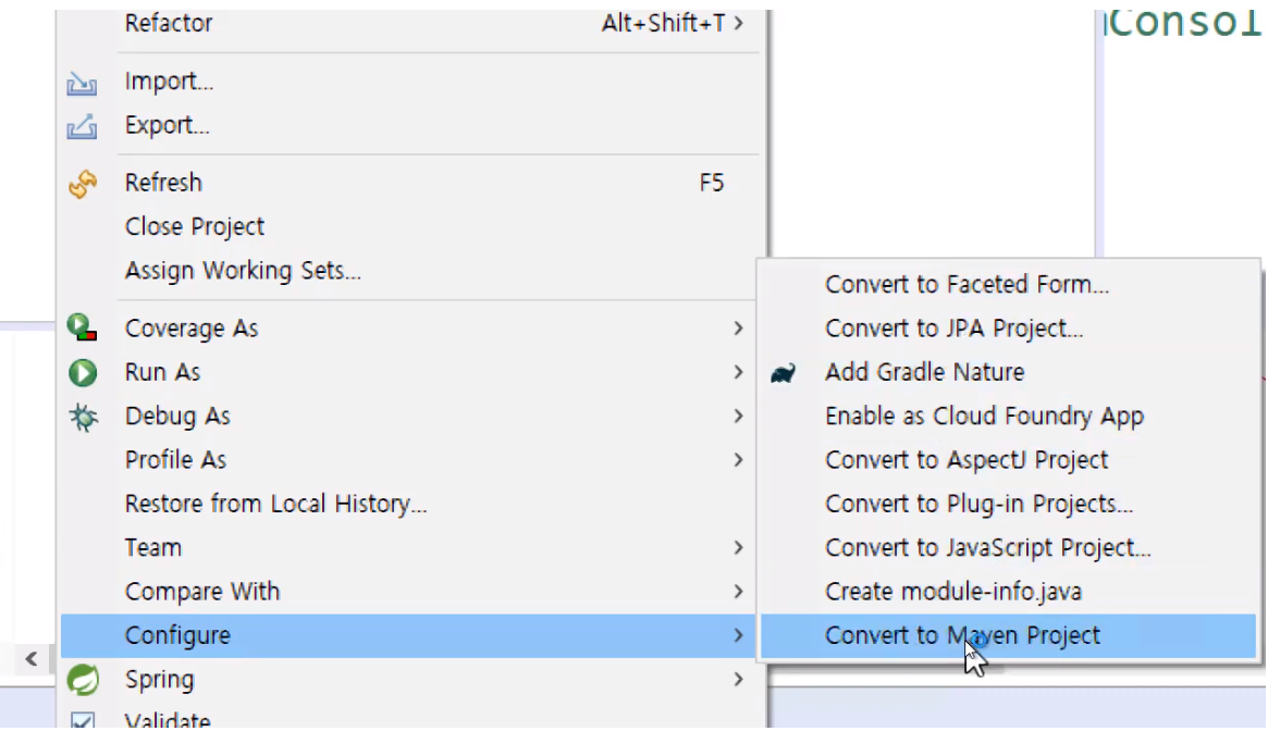 +Java Project일 때 Maven Project로 바꾸고 싶을 경우