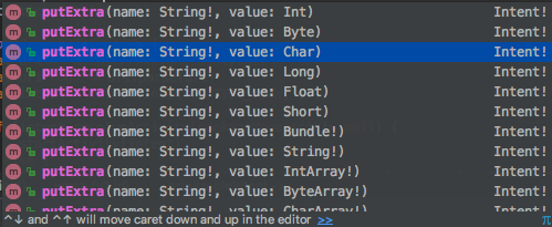 putExtra에는 다음과 같이 다양하게 전달 가능
