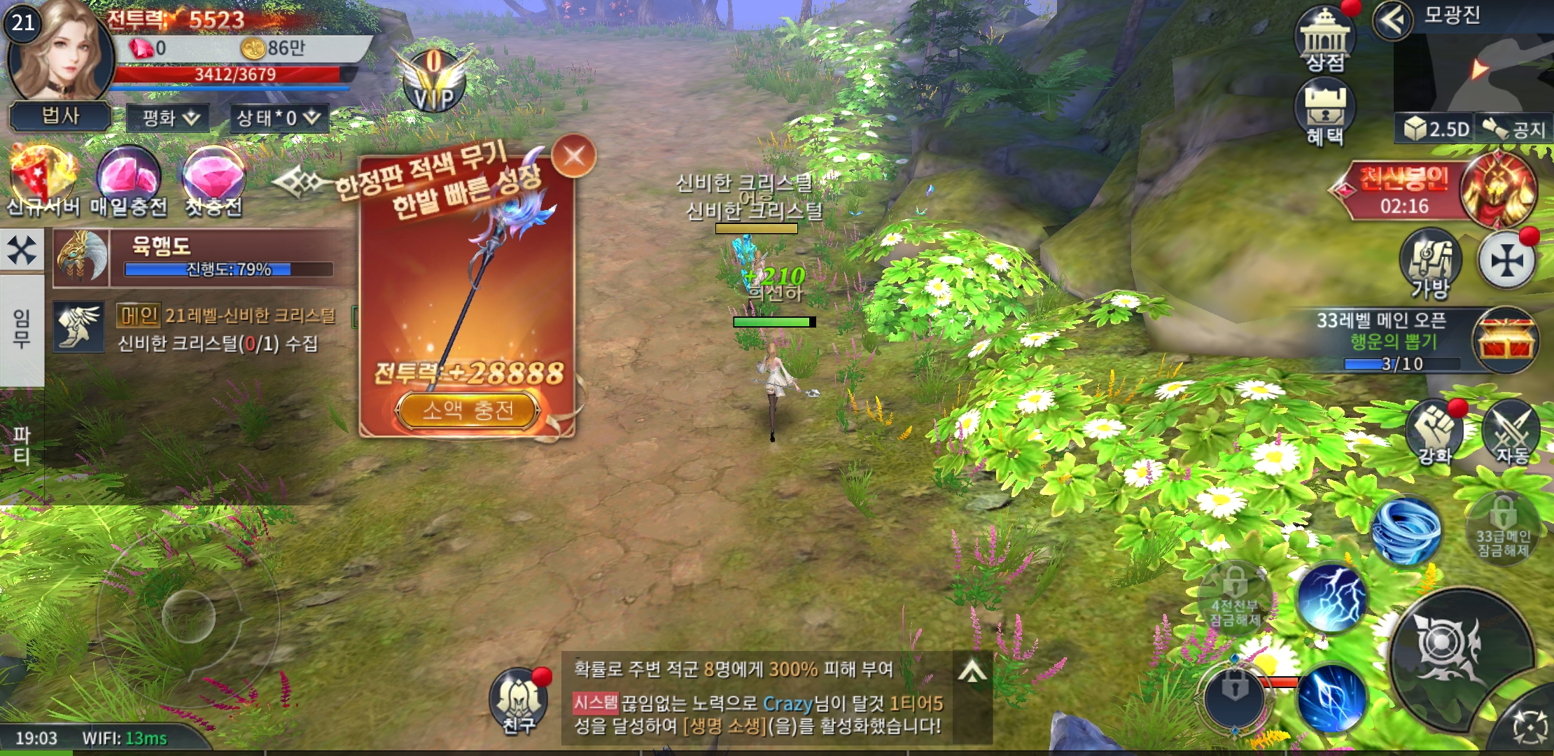 전형적인 양산형 게임에, 현질하면 빨리 레벨 오른다며 이곳저곳에 돈독 올라있는게 보이네요.